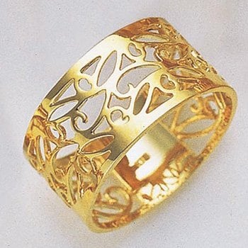 幾何学模様を思わせる透かし彫りがオシャレ感漂うリング。